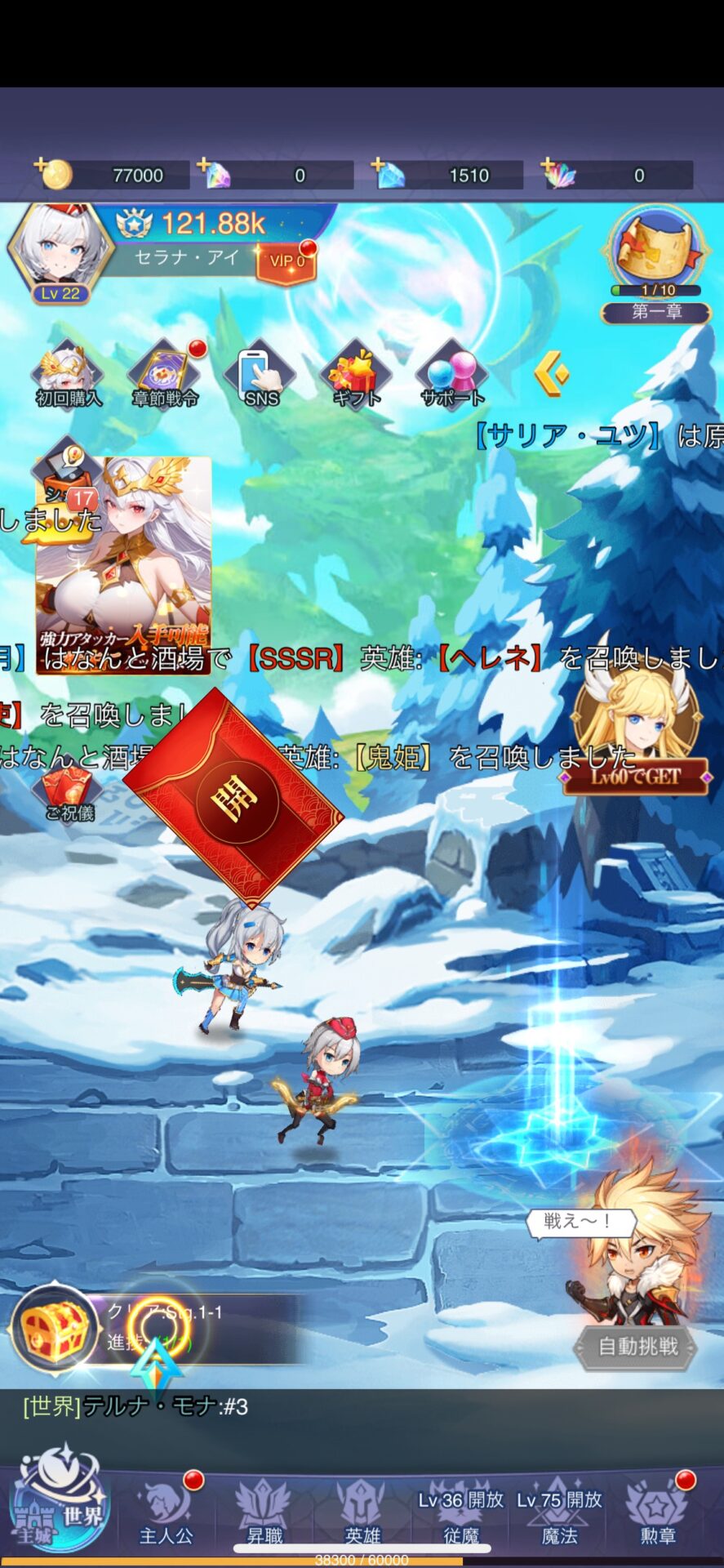 プレイヤーのキャラクターのレベルが60に達成すればSSSR英雄「暁の女神」が貰えます。