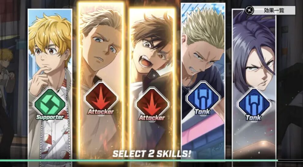 タッグスキルは5体のキャラクターの中から2体を選んでスキルを発動させます。