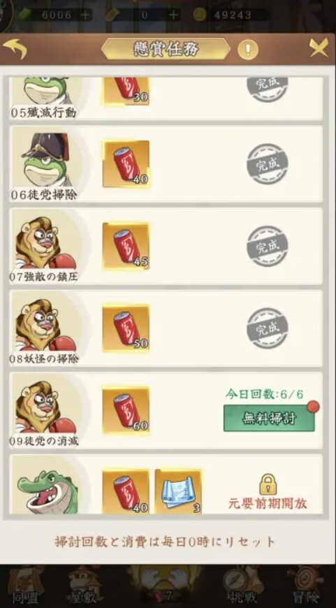 その他にもスタミナを獲得できる「懸賞任務」、アイテムを獲得できる「裏庭」などはフルオートで遊べます。