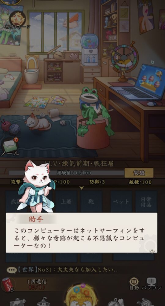 フルオートバトルやフルオート装備開封機能など、かなりお手軽さを重視しています。