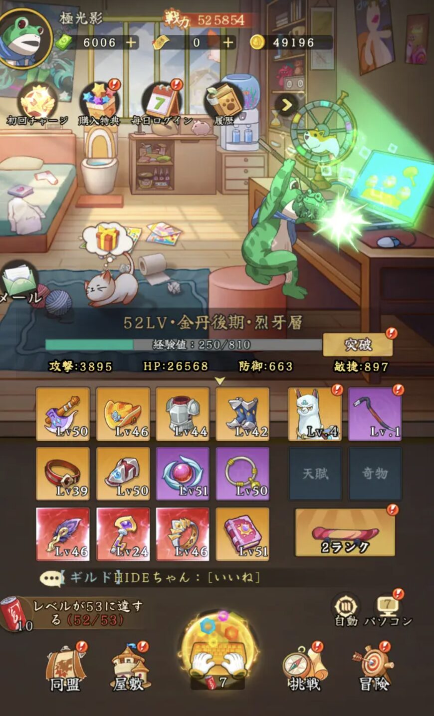 画面左下にあるミッションを参考にして進めば効率よく強くなれますよ。