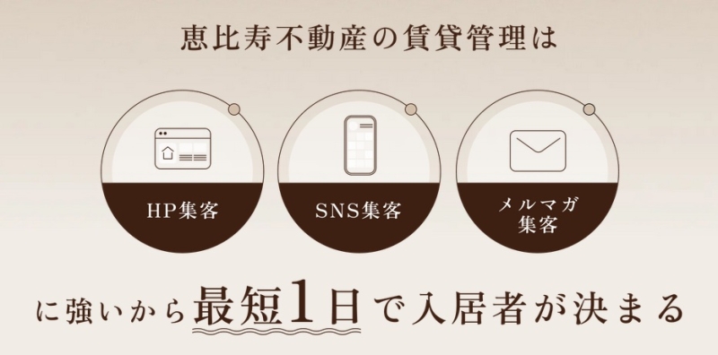 賃貸管理サービスにおいて最も重要なのは、いかに早く入居者を連れてこられるかという点であり、恵比寿不動産はWEBとSNSを駆使した集客力が大きなメリットとして機能しています。一般的な不動産会社とは比べものにならない露出量があるため、空室リスクを大幅に軽減できる仕組みが整っています。