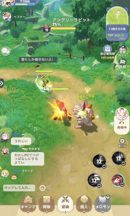 - レベルがサクサク上がって楽しい。