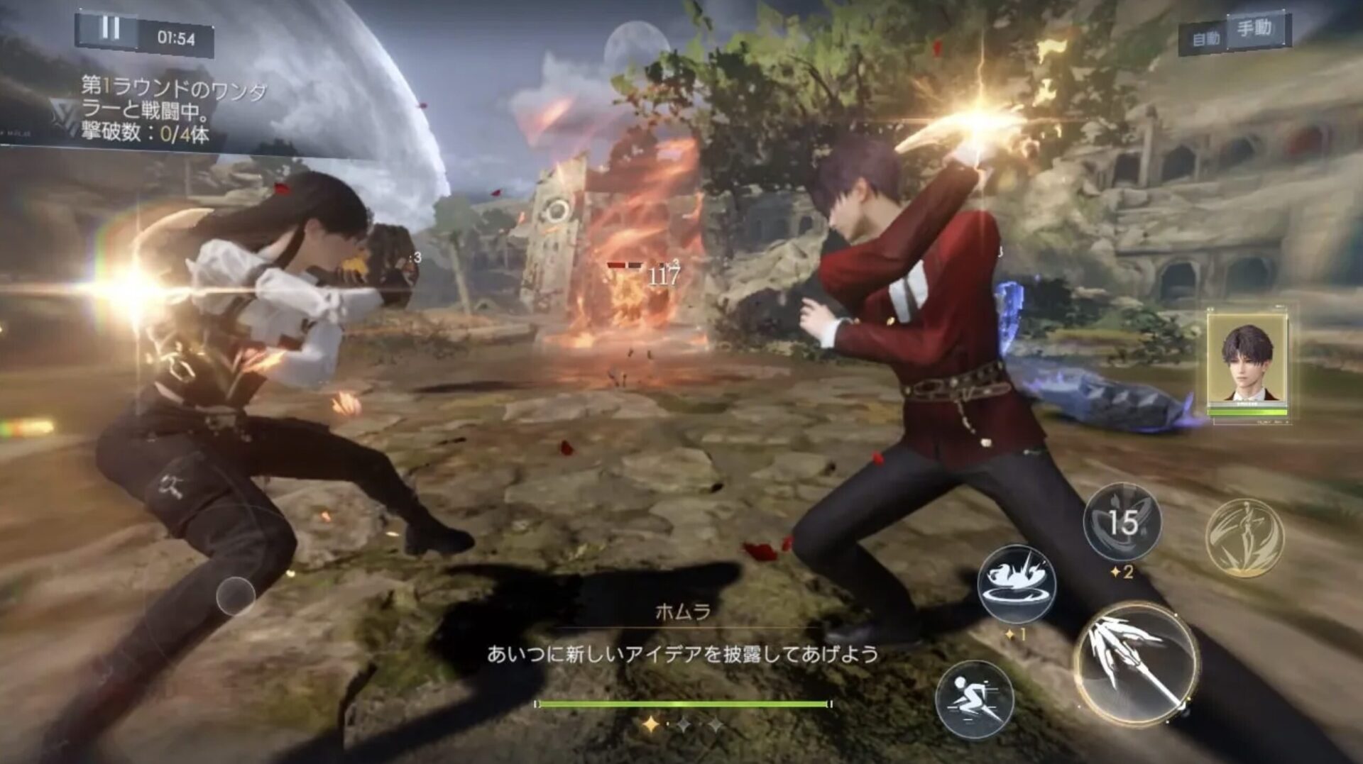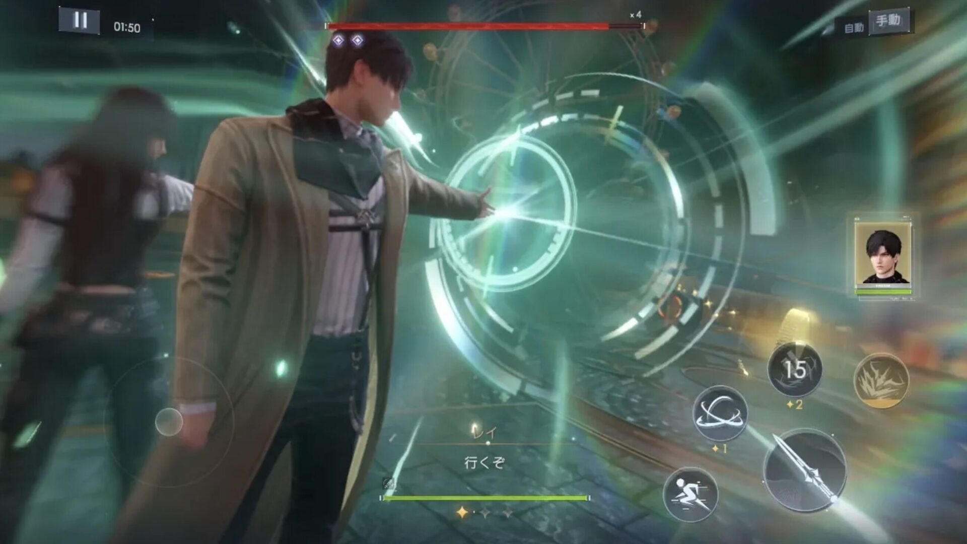 基本的な移動や攻撃の他に、エネルギーを消費して使えるアクティブスキル攻撃やイケメンキャラと協力できる共鳴攻撃などが可能です。
