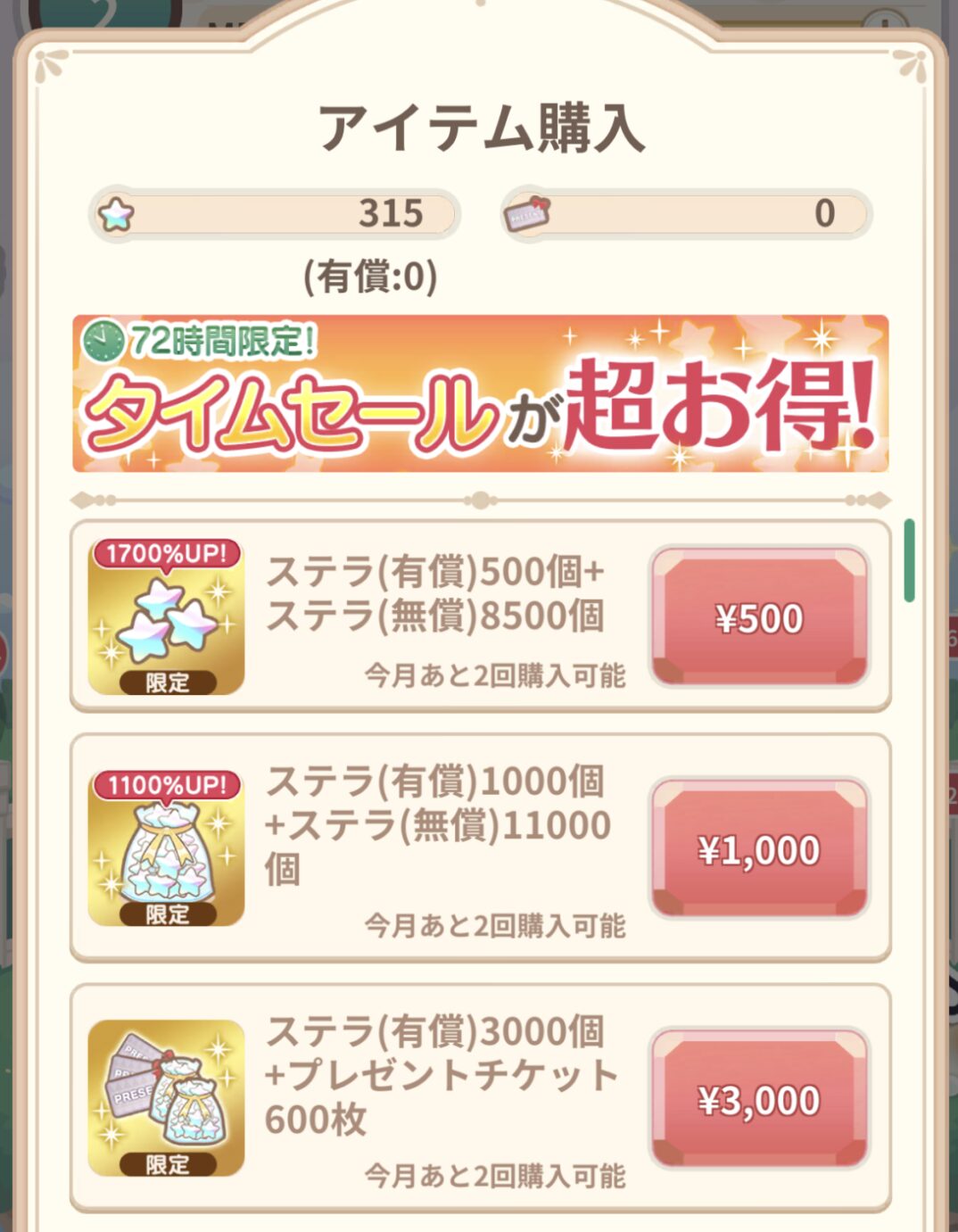 その中でもおすすめなのが「有償ステラ500個+無償ステラ8500個セット」です。