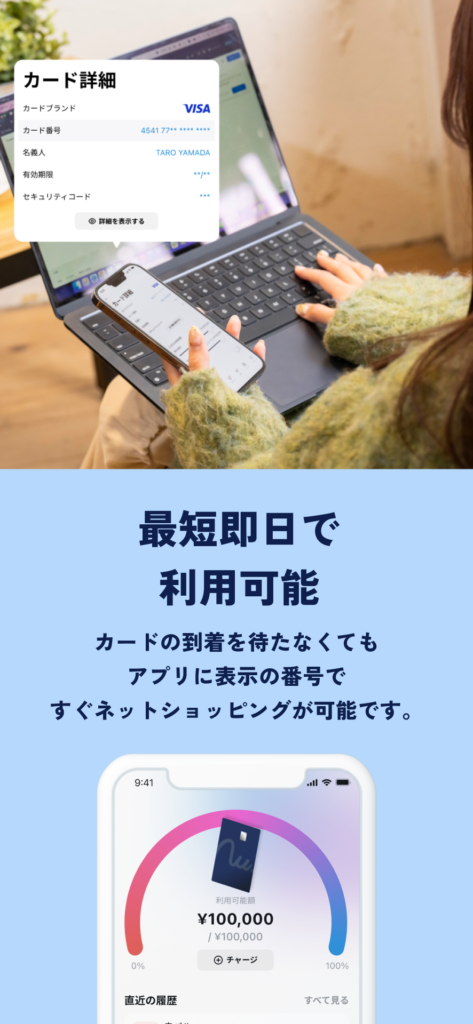 - 利用開始:バーチャルカードで即決済可能。物理カードは約1週間で自宅に届きます。