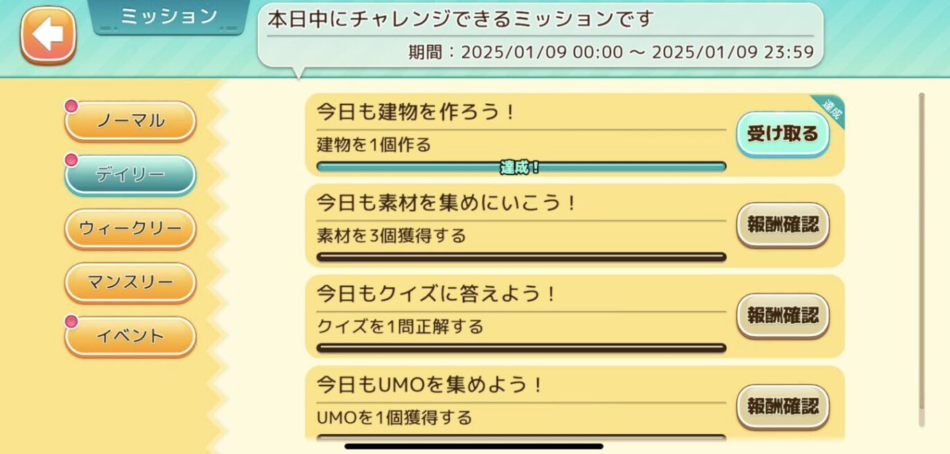 序盤は簡単なミッションが多いので、早めにこなして報酬を獲得しましょう!