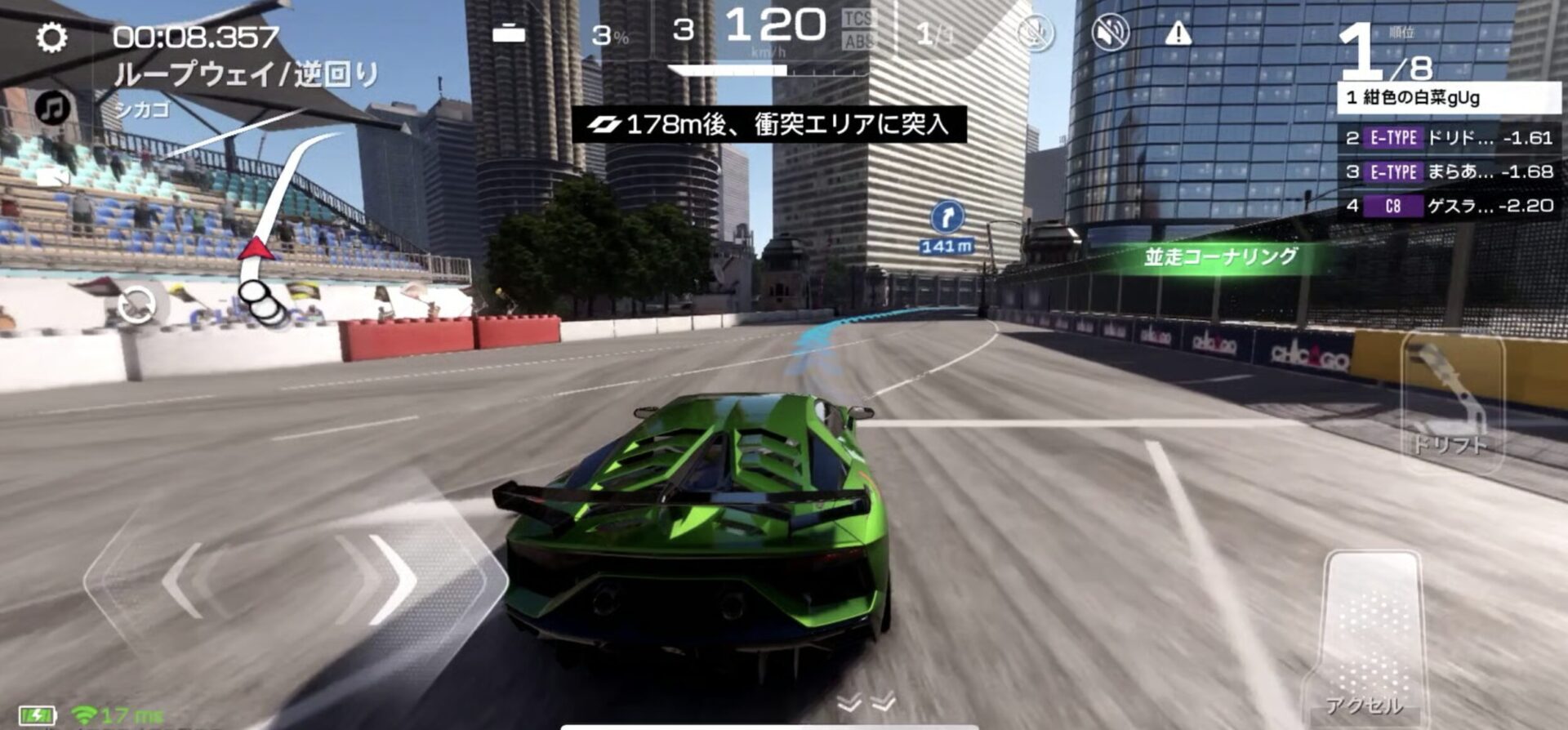 始めは操作が難しく感じるかもしれませんが、慣れてくるとドリフト決めるのがめっちゃ楽しくなってきます。