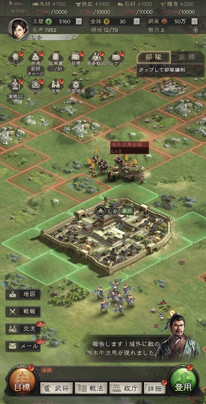 序盤は、兵士の訓練に必要な「資源」(木材、鉄鉱、石材、糧食)をいかに効率よく集めるかが鍵になります。メイン任務を進めながら、資源生産施設のレベルアップを怠らないようにしましょう。