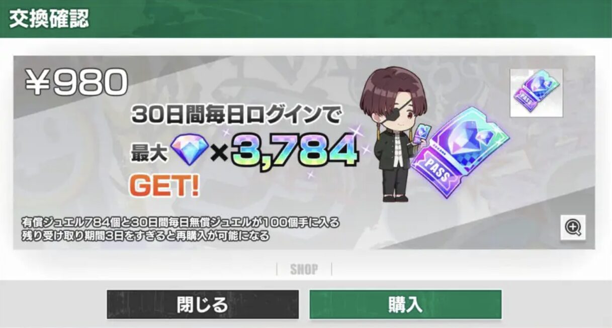 一度の購入で長期間にわたってジュエルを獲得できるので、コスパ最強です。