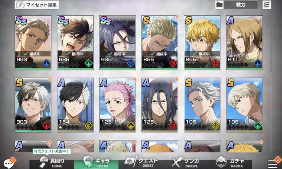 メインストーリーの他には、オリジナルストーリーや育成クエストなどのバトルコンテンツがあります。